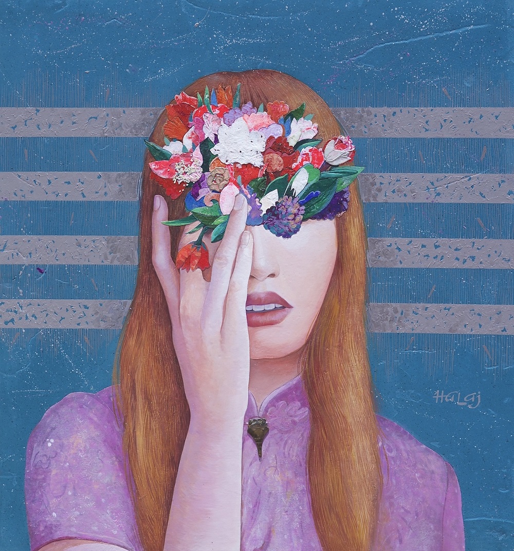 _ Floral Mind # 50 _ 2018 oil, mixed media on panel, 30×28 inches ( 76.2 x 71.12 cm.) Private Collection, LA.